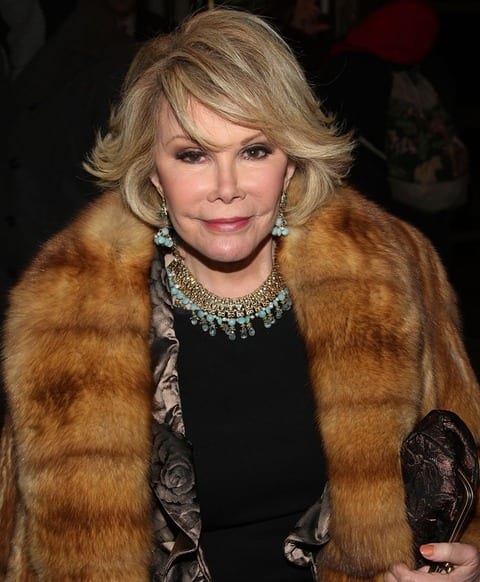 LEFT: Joan Rivers, wrapped in old-fashioned criminal chic.