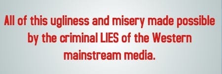 In his zeal to prove to his antagonists in the War Party that he is as bloodthirsty as their champion, Hillary Clinton, and more manly than Barack Obama, Trump seems to have gone “play-crazy” — acting like an unpredictable maniac in order to terrorize the Russians into forcing some kind of dramatic concessions from their Syrian allies, or risk Armageddon.However, the “play-crazy” gambit can only work when the leader is, in real life, a disciplined and intelligent actor, who knows precisely what actual boundaries must not be crossed. That ain’t Donald Trump — a pitifully shallow and ill-disciplined man, emotionally handicapped by obscene privilege and cognitively crippled by white American chauvinism. By pushing Trump into a corner and demanding that he display his most bellicose self, or be ceaselessly mocked as a “puppet” and minion of Russia, a lesser power, the War Party and its media and clandestine services have created a perfect storm of mayhem that may consume us all.— Glen Ford, Editor in Chief, Black Agenda Report [/su_box]