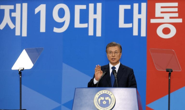 Nobody should be surprised that Moon, who was swept into power thanks to a surge of voters (he won by 41.1% against two conservative parties which received 24% and 21.1%) last year on a promise to reach out to North Korea and attempt to bring the two warring halves of the Korean Peninsula (they are still technically in a state of war that began in 1950, nearly 68 years ago) back together.
