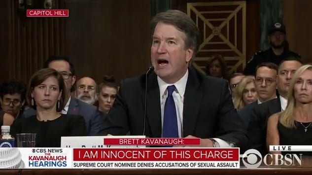 [dropcap]I[/dropcap] doubt that Kavanaugh’s dragging out of his wife to accompany him on a puff-ball interview session on Fox TV in which he, in one cringe-worthy moment, told viewers that “I did not have sexual intercourse or anything close to sexual intercourse in high school or for many years thereafter,” swayed anyone who was undecided about his moral, psychological and behavioral fitness to be one of the final deciders on justice in the land.
