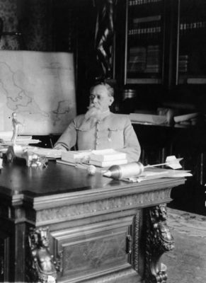 Carranza at his desk. Though leading a revolutionary army of land-hungry peasants, he never intended to fulfill that part of the bargain.