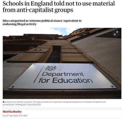 Last month England’s department of education ordered schools not to use any materials in the curriculum that question the legitimacy of capitalism. Opposition to capitalism was described as an “extreme political stance” – opposition, let us remember, to an economic system whose relentless pursuit of growth and profit treats the destruction of the natural world as an uncosted externality.