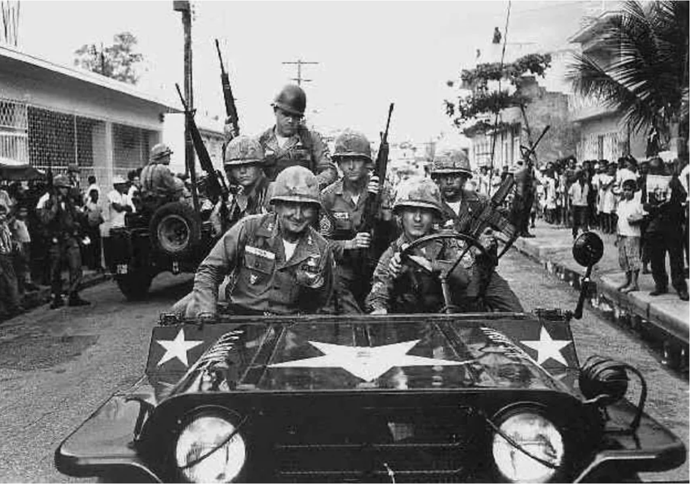 When a military junta seized power in a coup that September, expelling the elected president, Bosch’s supporters fought to regain control, and in April, led by Colonel Francisco Caamaño retook the National Palace. To prevent Caamaño’s forces from restoring a revolutionary government, the U.S. invaded with 20,000 Marines.