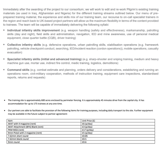 Further detail on Pilgrims Group’s activities in Ukraine appears in a leaked June 2016 Foreign Office proposal to train Syrian rebel fighters in Jordan as part of the plan to overthrow the Syrian government. The company was central to the project, running “simultaneous training programmes around the world,” and therefore maintaining a “large and flexible pool” of staff who could be assigned to the mission. MH17 was cited as an example of the speed with which Pilgrims Group could mobilize its operatives.