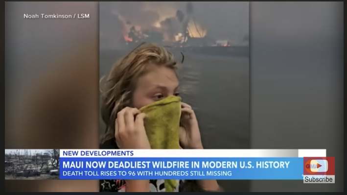 Sunday, 11:20 PM EST: A high school friend teaching on Lanai tells me on Facebook “It is worse than the news is saying… at least 200 dead… 1k missing…” I see the confirmed death toll now 93, and the cadaver-dogs are just being set to their grim task, combing through the rubble that was homes a few days back. As Alex Cockburn noted long ago, “Fires hurt the poor more… People are always being burned alive in tenements, though the news stories are always about wildfires menacing big homes.” Soon Maui will be out of sight and out of mind, as its allotted airtime shrinks to allow more Trump coverage, Ukraine War propaganda, and incessant appeals to the viewer to embrace an endangered system they conflate with “democracy.”