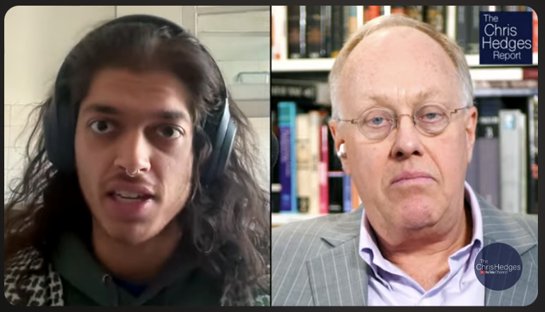 Just the day before, the January 15th edition of The Chris Hedges Report, “America’s Academic Gulag (w/ MIT Student Activists) | The Chris Hedges Report”, showed the great international war reporter Hedges interviewing two young rising stars and Ph.D. students at America’s leading STEM University, MIT, who are being driven out, and their scholarships and grant funding cancelled, simply because they consider genocide to be unacceptable. One, named Prahlad Iyengar, had been a National Science Foundation Fellow studying for his Ph.D. in the intersection of quantum information, quantum sensing, and machine learning; and the other, who is Richard Solomon, had been studying for his Ph.D in the political economy of trade and science, and who had previously been a Vice Consul and Assistant Secretary in the U.S. State Department.
