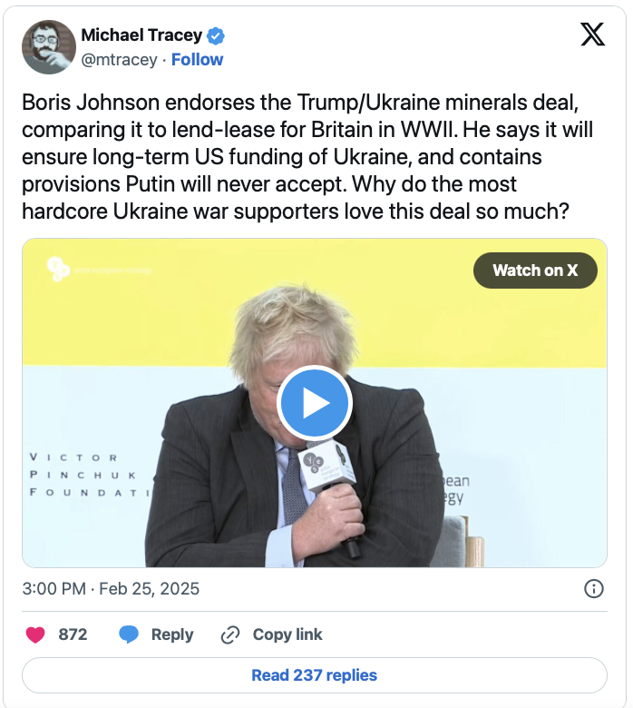 There is even some concern that the British have already signed some form of mineral deal with Ukraine and that Ukraine is selling the same stuff to more than one party.
