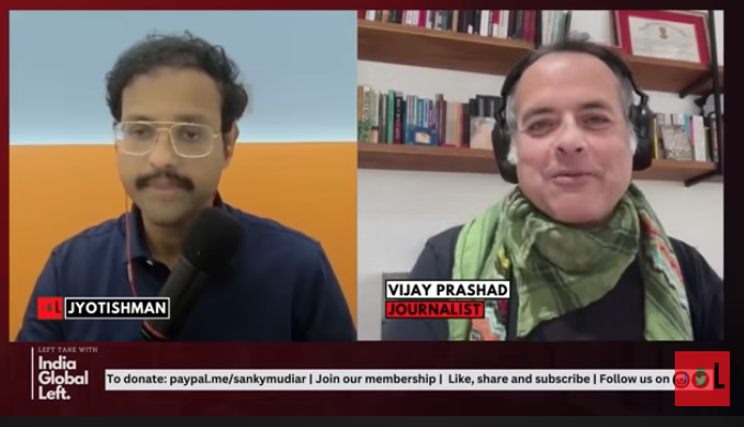 In this comprehensive discussion, historian and political commentator VJ Prashad provides a nuanced analysis of the current socio-political crises in Palestine, the dynamics of global geopolitics including BRICS and NATO, and reflections on socialism’s relevance today. Prashad draws historical parallels between the partition of India and the ongoing Israeli-Palestinian conflict, emphasizing the settler-colonial nature of Israel and its continuous policy of dispossession and occupation against Palestinians. He highlights the fragmentation within the Palestinian resistance movements post-Oslo Accords, but also points to recent signs of renewed unity, such as the 14-party statement brokered with Chinese facilitation.