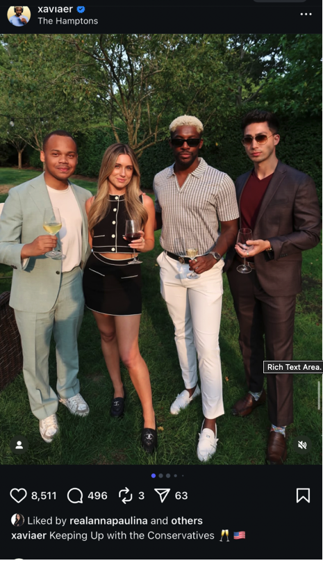 CJ Pearson – The chair of the Republican National Committee’s Youth Advisory Council, Pearson appeared in photos in the Hamptons alongside Wilson and DeRousseau. The Grayzone is awaiting further information from Pearson’s communications director.