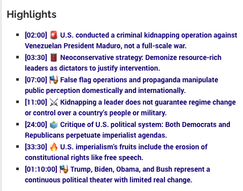 - [02:00] 🚨 Kidnapping as an act of war but not total war: Nixon clarifies that the U.S. operation in Venezuela involved targeted bombings and a kidnapping of Maduro, constituting an illegal act of war but falling short of full military invasion. This distinction highlights the U.S.’s preference for covert, deniable actions to destabilize nations without triggering outright war or widespread international backlash.